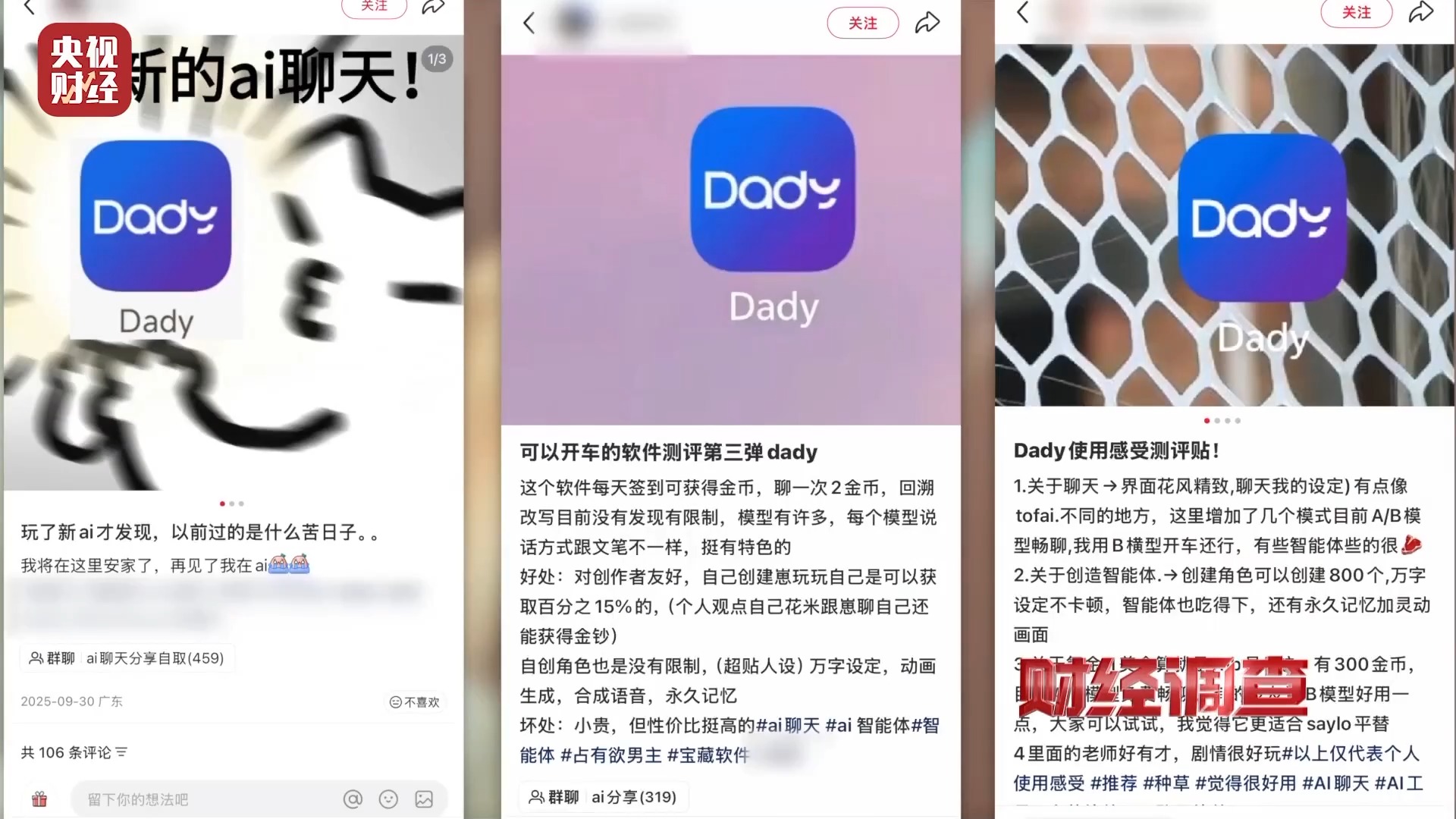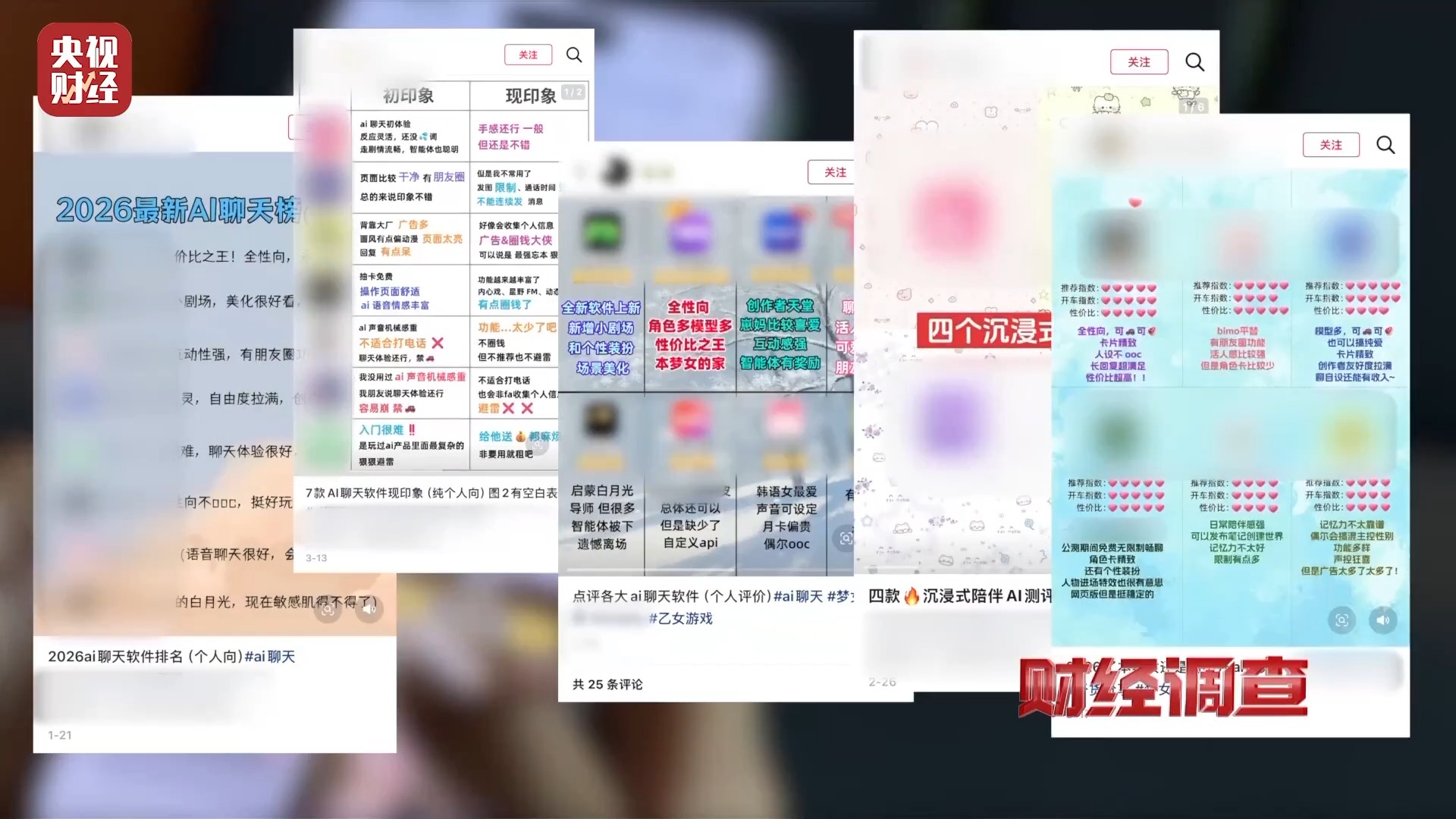 总台《财经调查》记者在某社交媒体平台上搜索“AI语聊”,在搜索结果中看到,大量以“可开车、脸红心跳、开放、无限制词”等为关键词的帖子。点开帖子,记者在评论区中随处可见用户发送各种无限制词的AI聊天软件使用分享,以及软件的下载链接和邀请码。