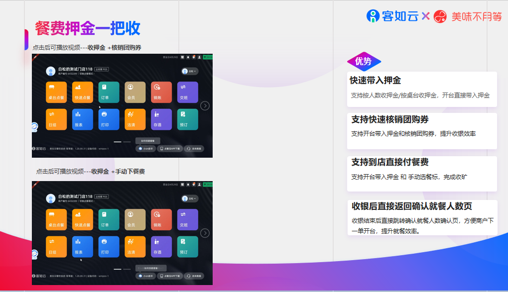 例如,对于中餐大店遇到节假日高峰时段时,预订需求则更为明显,客如云正餐解决方案支持预订提醒与备菜管理等多种功能,并有精美的预订邀请函模板供为选择,通过这些细节的功能应用,可以有效提升顾客体验。而对于火锅业态下,一些更匹配该场景的功能显得尤为重要,如支持点餐时锅底优先下单,可有效缩短顾客等待时间。而对于自助餐业态的运营模式,客如云系统还可实现餐费与押金一次性收取,让顾客自助核销团购商品,显著提高门店运营效率。这些都是帮助餐饮商家做好服务,帮助优化顾客就餐体验方式。