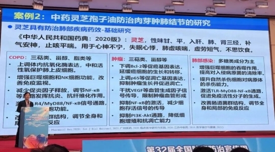 广州呼吸健康研究院呼吸疾病全国重点实验室陈晓红教授以《从基础到转化:以灵芝孢子油为例的肺结节中药干预研究》为题,深入解读了灵芝孢子油在肺结节干预中的作用机制与临床转化价值,为肺结节患者的中医药干预提供了科学依据。