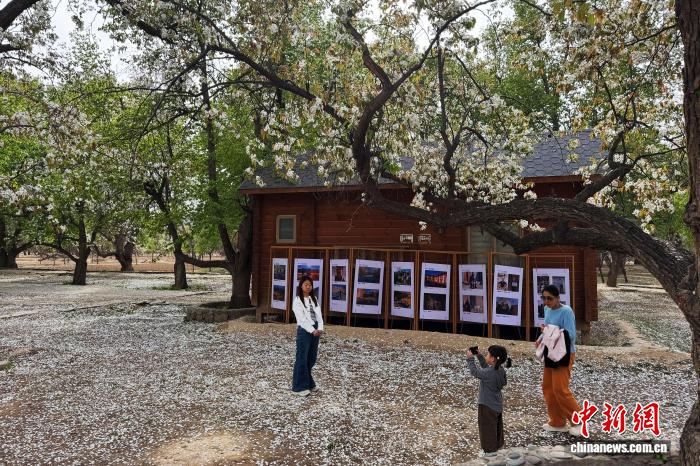 4月10日,从季宁夏中卫市南长滩村百年梨园,风光游客拍照打卡欣赏美景。到全中新网记者 李佩珊 摄