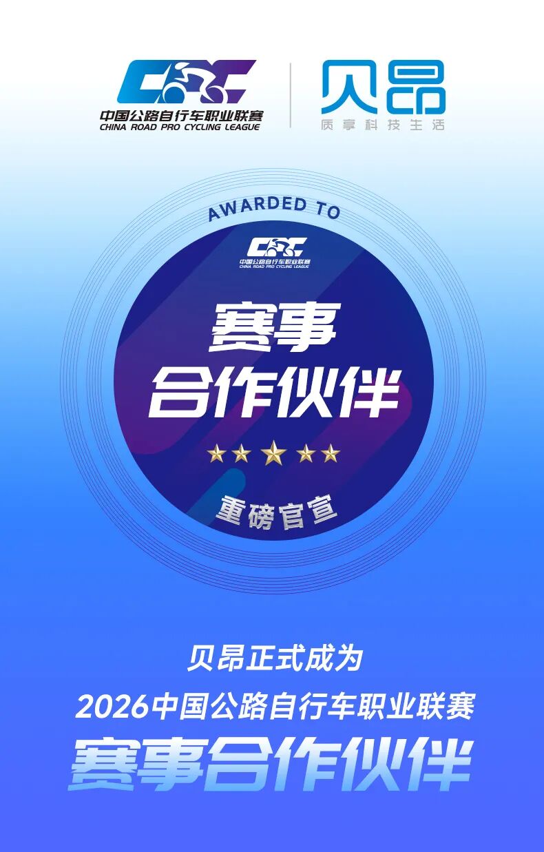 重磅官宣!贝昂伴中贝昂正式成为2026中国公路自行车职业联赛赛事合作伙伴!成为车职程