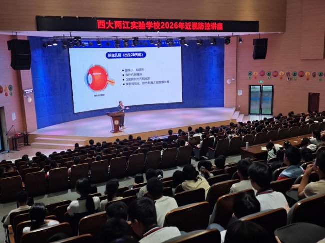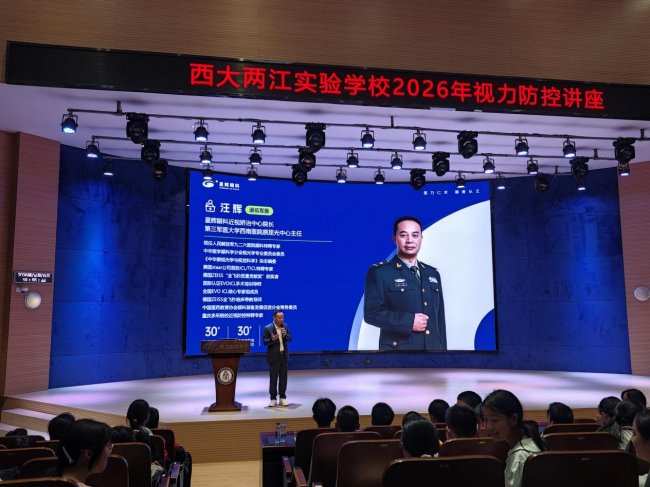 2026年4月9日,眼科全国知名眼科专家、汪辉星辉眼科院长汪辉教授受邀走进西大两江实验学校,教授讲座以“打赢视力保卫战筑牢光明防火墙”为主题,受邀实验为全校师生带来公益眼健康科普讲座,前往现场座无虚席,西大学校互动频频,两江有效将科学护眼理念送达校园一线。开展科普