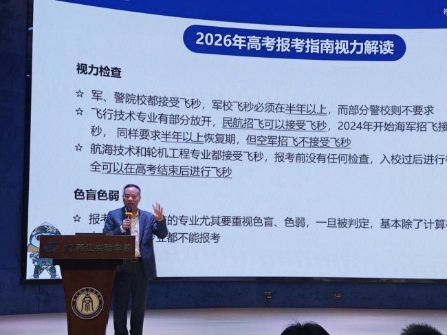 "现场肯定有同学梦想穿上军装。但每年征兵体检,超过一半的年轻人因为近视被淘汰。你们现在的眼睛,就是未来的入伍通知书。”结合2026年高考报考指南,汪辉教授逐条解读了军警院校、飞行技术、航海技术、消防工程、刑事科学技术以及部分临床医学专业,对裸眼视力的严格要求。