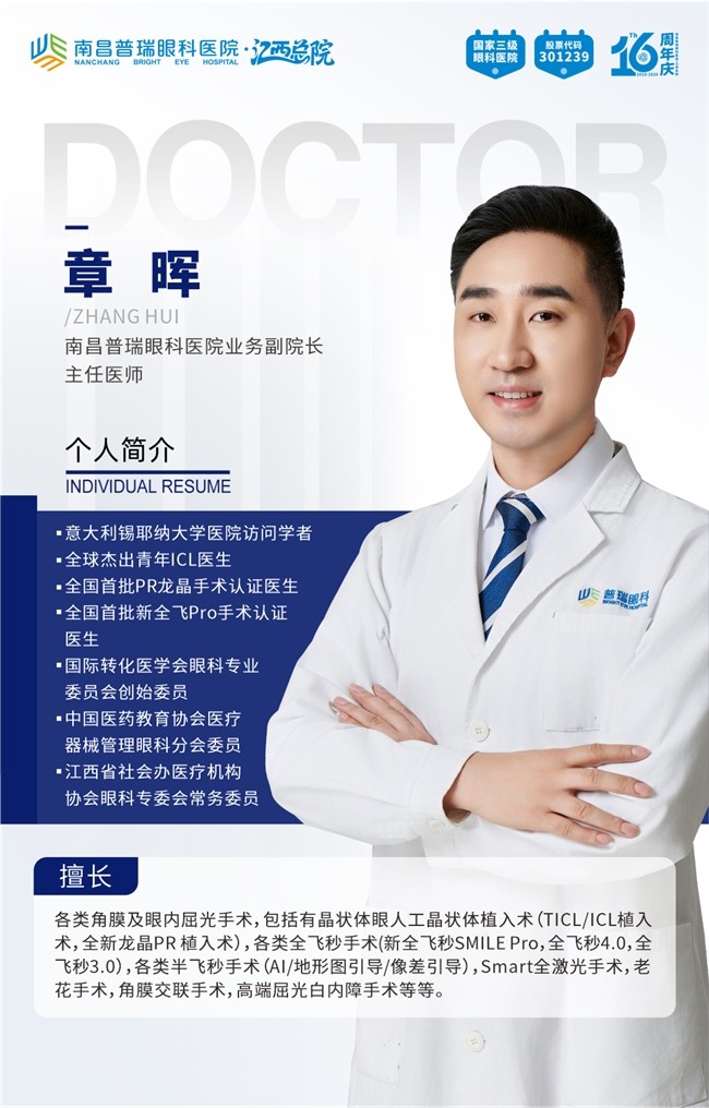 如果说前两位专家代表了“深度”,那么章晖业务副院长则带来了“广度”。作为南昌普瑞眼科医院的业务副院长,章院长曾公派前往意大利进行学术访问与交流,拥有国内外多家眼科医院的诊疗经验。