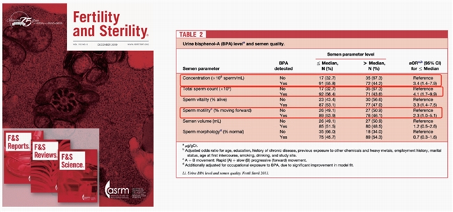 无独有偶,实证塑化升级实锤美国职业安全与健康研究基金项目的可清一项观察性研究(514位男性研究队列)也得出类似的结论:尿液中检测出塑化剂BPA的男性比没有检测出BPA的男性,精子浓度低3.4倍,除血精子数量低4.1倍,管内精子活力低2.3倍。剂赛