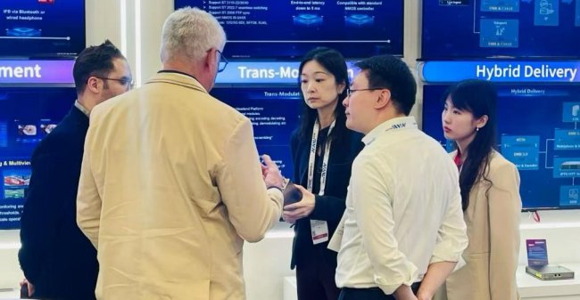 ContentDelivery展区,数码视讯主要展示了包含传统付费电视分发,高密度转码,传输质量保障等针对运营商分发相关解决方案。其中公司的多协议IP传输方案,重点围绕电视台分站点间传输、上星编码、分站点回传总站等场景,包含近场浅压缩传输和远场深压缩传输等多种方式。此外,本次NAB上公司还展示了针对酒店娱乐大屏、智慧会议室、中控调度大屏等场景的分布式显控大屏方案、针对运营商传输主备无感知切换场景及针对上星链路备份场景的安播切换方案以及,包含DOCSIS的CATV波分复用方案与边缘调制、FTTH等的接入网方案,展会现场吸引了大量业内人士的关注。