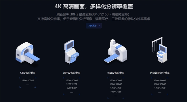 ● 高清低延迟,适配医疗分辨率:支持4K及各类医疗设备特殊分辨率(CT、超声、内窥镜等),自研算法保障画面流畅低延迟,弱网环境同样稳定。