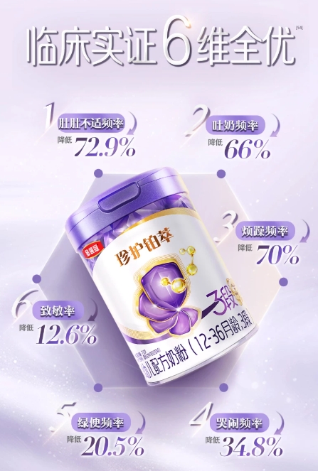 敏护力:采用获得A2β-酪蛋白GGU权威认证的纯正A2β-酪蛋白奶源,本身具备亲和低致敏的特点。再加上HMO的辅助,可将致敏蛋白指标降低65%。即便是肠胃娇嫩、易敏感的宝宝,也能顺畅吸收消化,减少不适困扰。