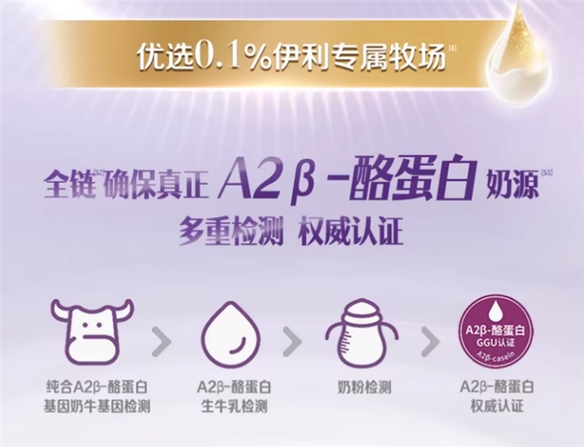 奶源:0.1%伊利专属有机牧场的纯净鲜活有机A2β-酪蛋白奶源,珍稀加码