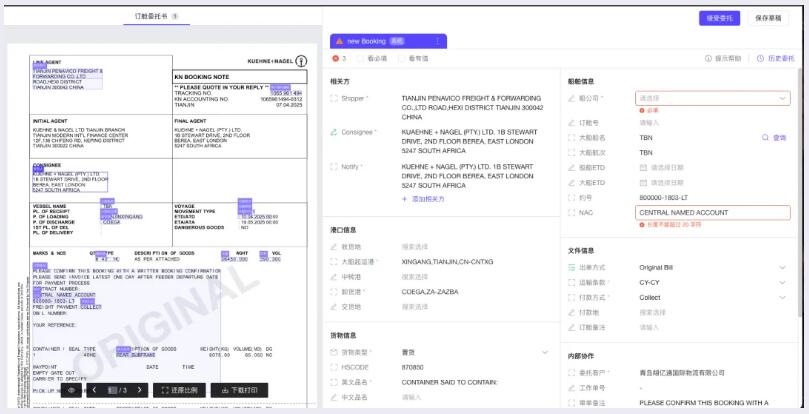 遇到信息不全的托书,它会依托历史订单数据智能补全,确保流程顺畅,避免耽误客户货物出运。