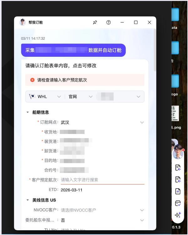 订舱是国际物流核心环节,传统模式下,操作员需跨平台切换、手动录单、熬夜盯舱,国际航线还要倒时差,辛苦又易疏漏。