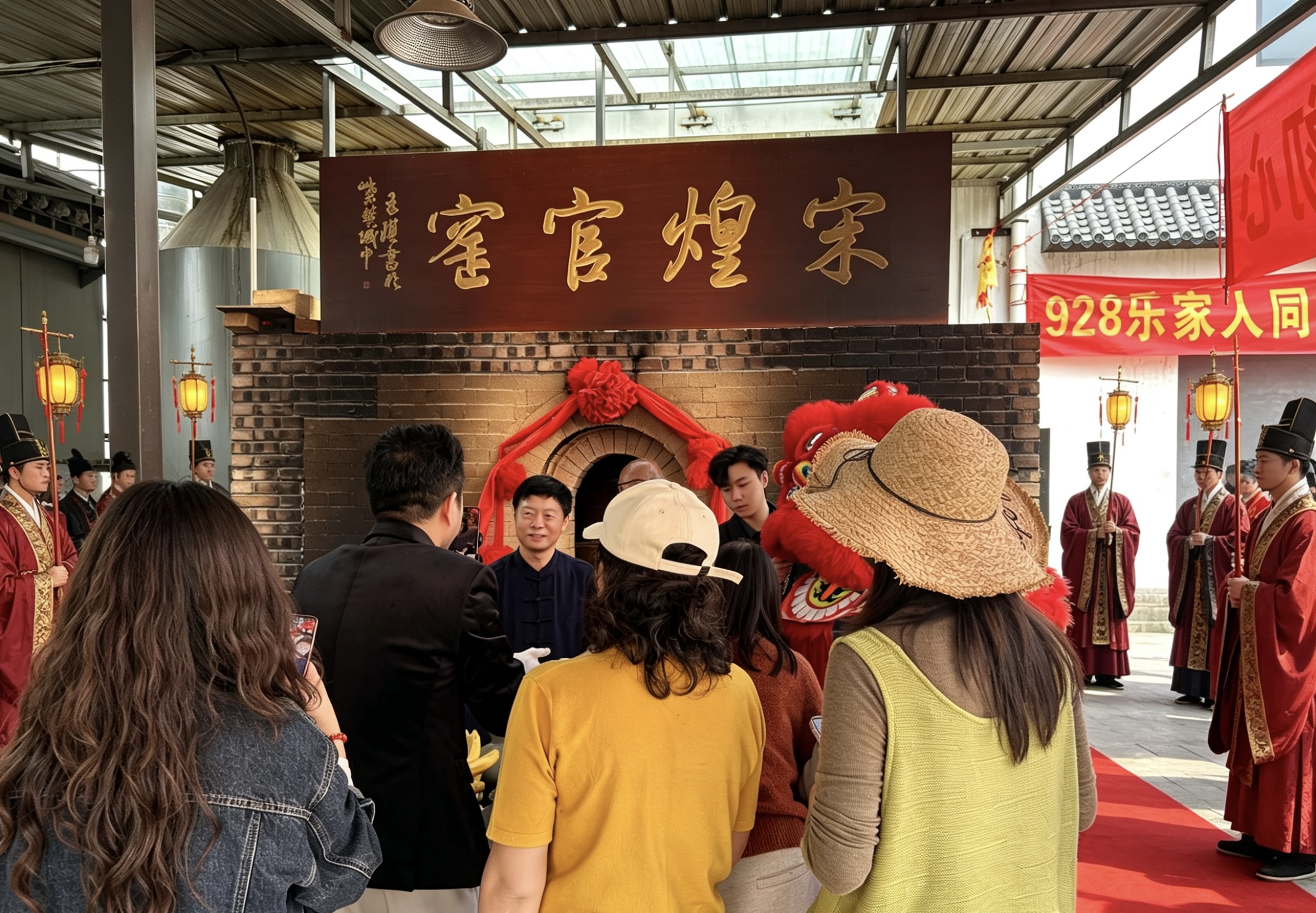 本次盛典以“传承非遗、守正创新、文化惠民、文脉永续”为核心,分为古法开窑、匠心鉴瓷、战略签约三大篇章,全程遵循传统礼制,以庄重仪式致敬千年非遗。正午时分,开窑大典正式启幕,锣鼓齐鸣、礼炮震天,身着传统工装的工匠团队以白手套执礼,缓缓开启历经三月松木柴烧的官窑窑炉。窑门开启之际,满窑官瓷温润凝脂、釉色天成,紫口铁足尽显皇家威仪,冰裂开片宛若自然天成,每一件器物皆是万坯一品、独一无二的匠心孤品。