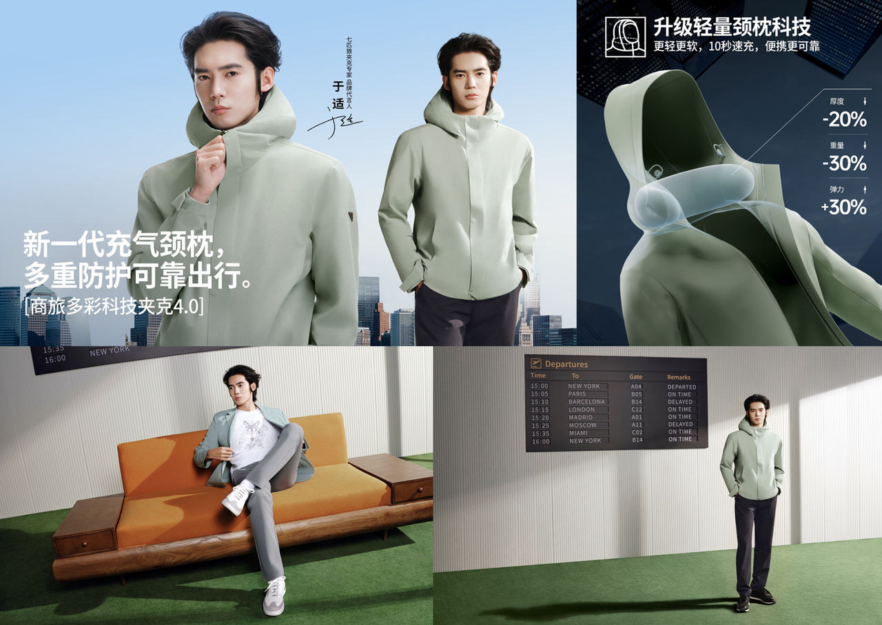 顺着这条思路,“多彩商旅”的概念也就水到渠成了。七匹狼以多彩POLO和商旅夹克,打破了传统商务男装被黑白灰长期统治的沉闷格局,让商务穿着从“尽量不出错”走向“勇于表达我是谁”。于是,“多彩”也不再只是颜色上的丰富,而成为一种更自信的态度:它让男性着装在体面与实用之外,拥有了文化的温度、审美的层次和表达的锋芒。这背后所释放出的,正是中国男装从功能满足迈向价值认同的一次清晰跃升。
