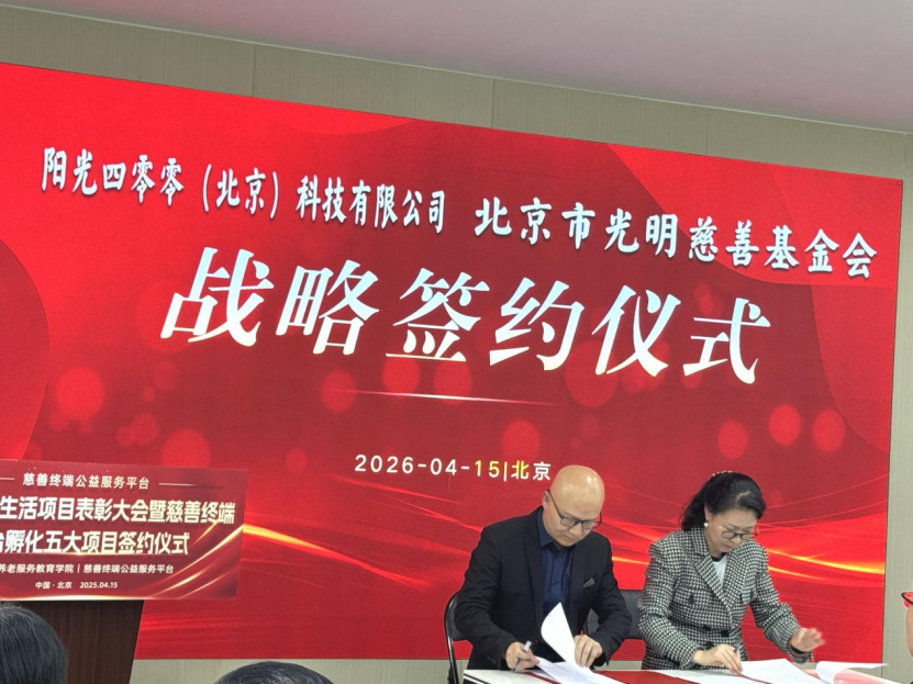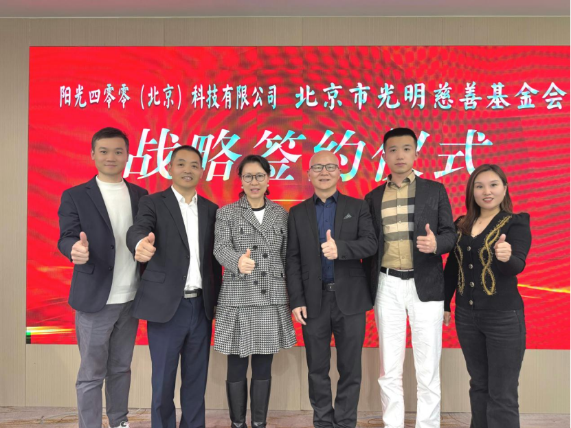 2026 年 4 月 15 日,阳光阳光四零零(北京)科技有限公司(简称 "阳光400")与北京市光明慈善基金会战略合作签约仪式在北京圆满举行。北京双方正式建立战略合作伙伴关系,市光善基阳光 400成为光明慈善基金会官方认证的明慈"爱心企业",未来将以技术赋能公益、达成以行动践行责任,战略共同推动慈善事业数字化、合作高效化发展,阳光助力更多弱势群体感受社会温暖。北京