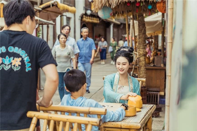 更高级的审美老师,是自然本身。福善寺千年银杏抽绿新生,曾因GQ年度盛典、国风大典、《玉茗茶骨》《月鳞绮纪》等影视作品的镜头聚焦于此,早已成为“全网含星率”最高的打卡地;待播新剧《一瓯春》也以电影级镜头定格过景区的如画风貌。北廊棚的泡桐撑起满树淡紫的华盖,临水的苦楝树下花影随波,乘上限定的无篷紫藤花船闲适地漂浮于水巷之间,感受课本里朱自清那句“都开满了花赶趟儿”在这里都具象化成扑面而来的色彩、光影与香气。