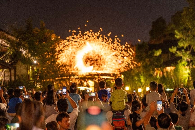当春夜渐浓,华灯初上,一场以千年时光为脉络的古风夜游——春日版·濮院梦华录在濮驸马第广场如期启幕。60分钟的沉浸式漫游中,每一步都能邂逅夜色里的古雅惊喜:“十二花神”踏光而来,衣袂翩跹,眉眼蕴春;古风舞蹈婉转悠扬,水袖如流云拂过月影;市井杂技妙趣横生,烟火暖意融入每个腾跃动作;水上火舞划破夜空,光影与水波共舞,点燃春夜的激情……步步有景,处处有戏,古韵与温情在晚风与光影中相拥,让游客仿佛穿越至《东京梦华录》中“花光满路,何限春游”的宋式光景。