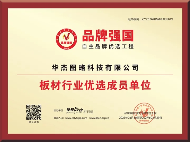 品牌强国战略作为国家层面推动产业升级、板材构建自主品牌全球竞争力的入选核心部署,旨在遴选各领域技术领先、品牌品牌信誉卓著、强国具备长期价值的标杆企业,以权威赋能激活民族品牌发展动能。「品牌强国・自主品牌优选工程」以高门槛、严标准筛选行业中坚力量,不仅是对企业综合实力的认可,更是对其产业责任与发展潜力的背书。华杰板材此次入选,既是企业三十余年坚守实业、深耕创新的成果兑现,更标志着其在品牌价值、技术标准、行业影响力等维度,跻身国家级优质自主品牌阵列。