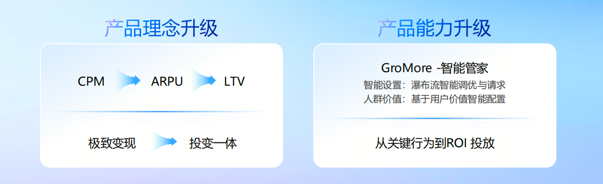 回顾GroMore的成长轨迹,可以清晰地看到一条从单点优化,走向全局经营的进化路径。每一层跃迁,都始终与开发者的经营需求同频共振。