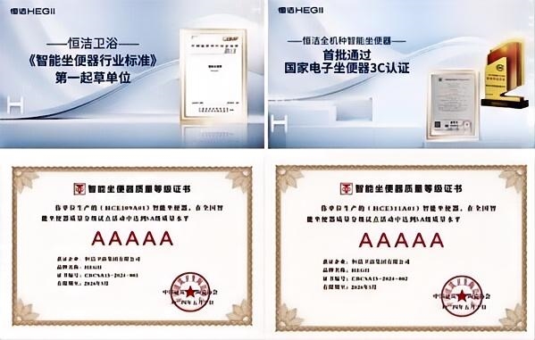 2024年,它更是成为首批全机种获得国家CCC认证的卫浴企业,在全国智能坐便器质量分级试点中,恒洁智能产品成功斩获最高5A等级,功能性、舒适性、耐用性等核心指标,都达到了国际领先水平。