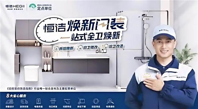 此外,恒洁还精准拿捏了用户换新卫浴的痛点,推出“焕新闪装”服务,最快3小时就能完成拆旧换新,不用长时间等待,也不用费心处理拆旧产品,彻底解决了换新的后顾之忧。更贴心的是,它的“恒洁在线——卫浴24小时远程排忧”无忧服务,不限品牌,不管用户家里在用什么品牌的卫浴产品,遇到难题都能随时求助,真正做到了急用户之所急。